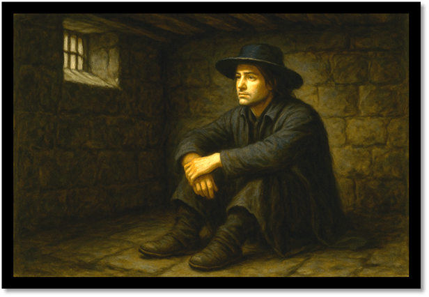 Outside, the sound of boots passed, then faded. Somewhere down the corridor, a prisoner coughed painfully—a deep, rattling cough that spoke of damp and neglect. He knew such places were meant to wear down the body until the will followed, but he also knew that the will, once anchored in something beyond the reach of the King’s prisons, could outlast the body. He wondered how long he might remain in this place, and if he would be sickened again; perhaps unto death.