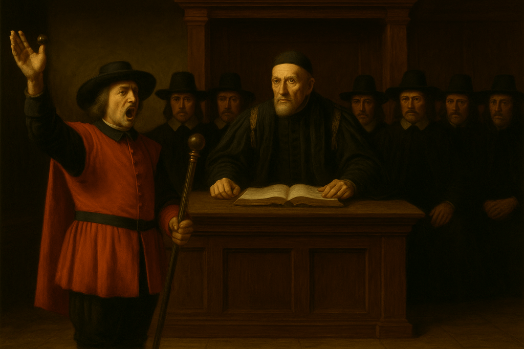 “James Parnell, you stand accused of disturbing the peace, refusing the authority of the Church, defaming lawful magistrates, and publishing seditious writings contrary to the order of England and the well-being of its people.”