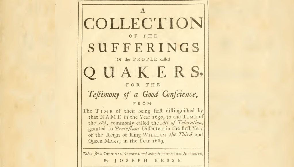 Whitehead himself, being something of a child prodigy, would have been sent away to formal studies by six or seven. At fourteen, he was “convinced and persuaded that tithes ought not to he required or paid, under the gospel dispensation.” Picture if you will a clergy that financed itself with tithes, burdening a people already laboring under the weight of the king’s taxes. Thomas Besse’s Sufferings of the Quakers relates incident after incident of over-zealous “tithe-mongers” helping themselves to excessive portions of a farmer’s crops and animals.